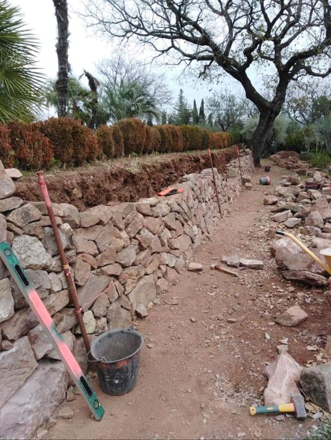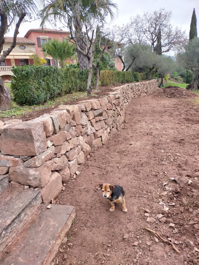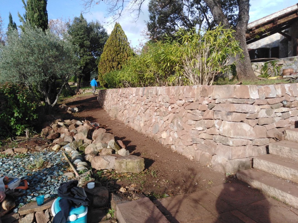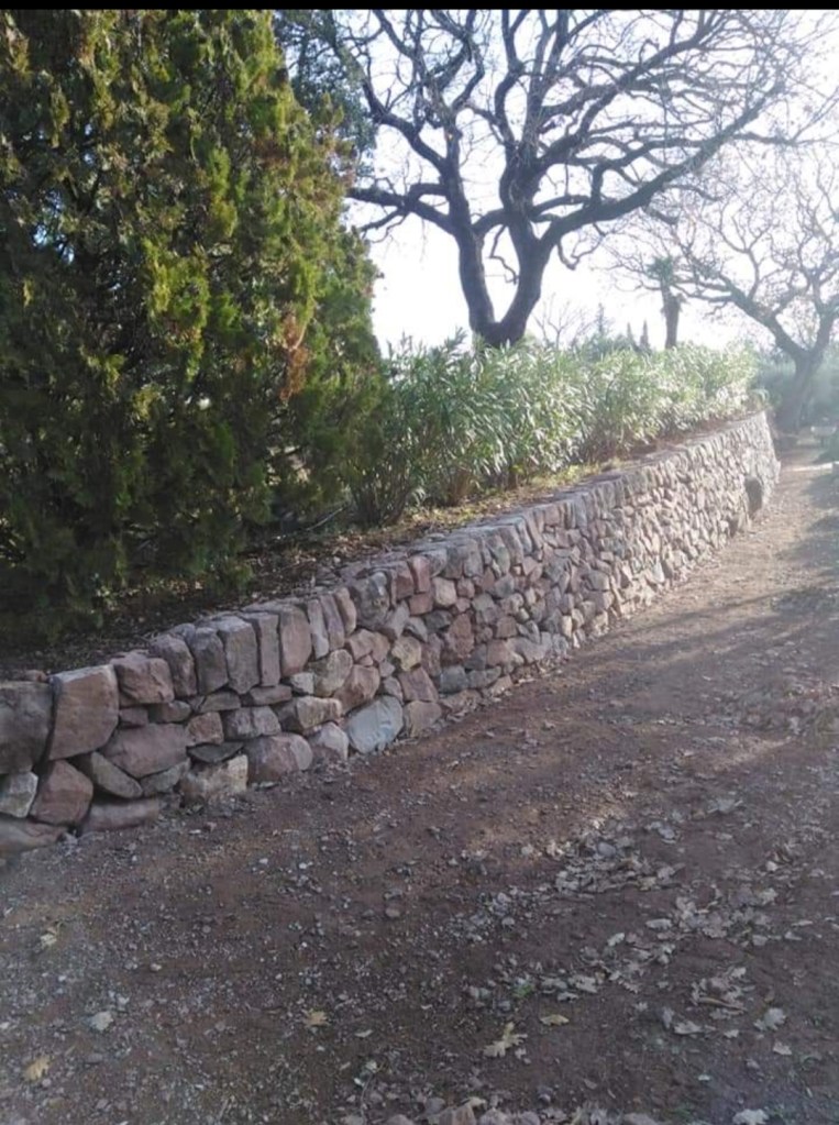 C’est à Cuers que nous avons réalisé la réfection de ces trois restanques en pierre sèche. Toutes les pierres sont issues du démontage des anciens murs, et de la propriété. Un grés de couleur rouge